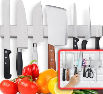 O Kit de Armazenamento de Facas para Parede da Cozinha é um sistema de armazenamento de facas seguro e fácil de usar que ajuda a manter sua cozinha organizada. É feito de aço inoxidável de alta qualidade para resistência e durabilidade. Instale-o facilmente na parede e mantenha suas facas seguras e organizadas.