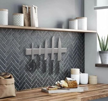 Você já se sentiu frustrado por não conseguir encontrar facilmente suas facas na cozinha? É difícil mantê-las organizadas e seguras? O Kit de Armazenamento de Facas para Parede da Cozinha foi projetado para resolver o problema de armazenamento de facas em sua cozinha. É fácil de instalar e mantém suas facas organizadas e seguras.