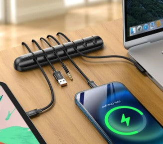 Além disso, o organizador de cabos multiuso é fácil de usar. Basta inserir os cabos nas ranhuras ou fixá-los nos clipes, mantendo-os no lugar. Isso ajuda a evitar que os cabos se movam ou caiam da mesa ou área de trabalho.